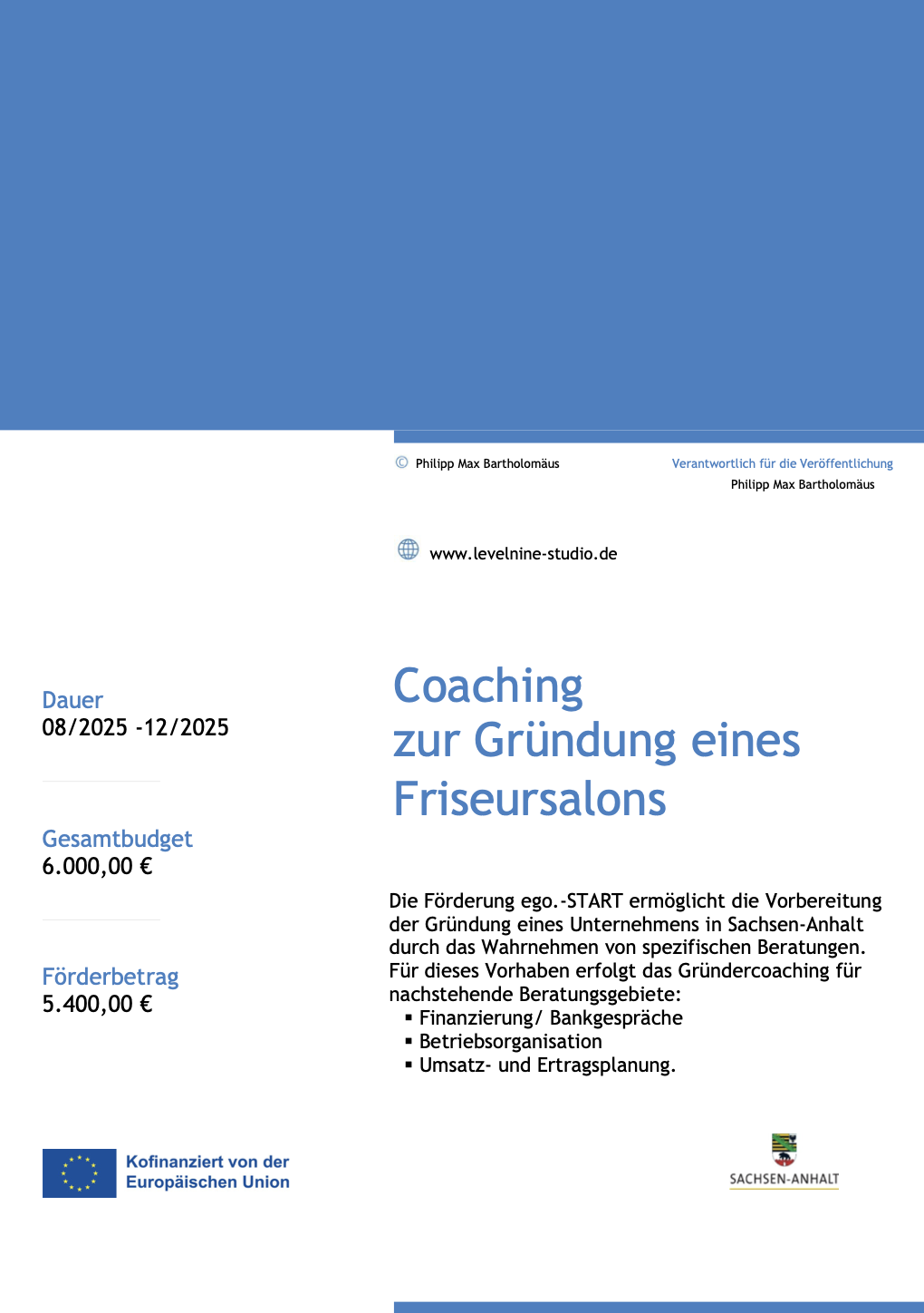 Die Gründung dieses Unternehmens wurde mit Mitteln des Landes Sachsen-Anhalt unterstützt.